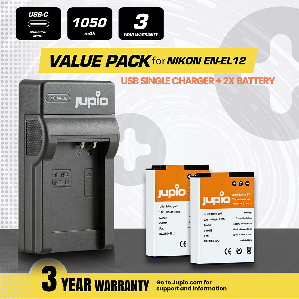 Jupio Value Pack: 2x Battery EN-EL12 + USB Single Charger