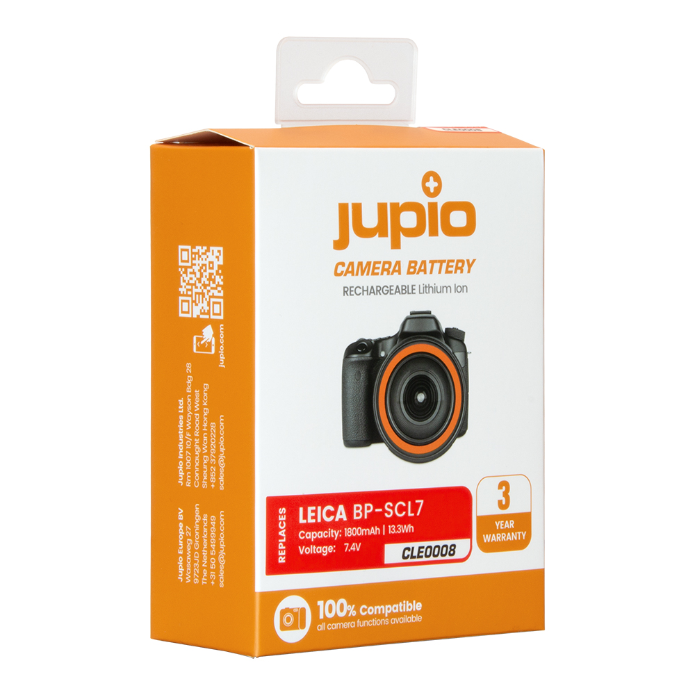 De Jupio CLE0008 accu heeft een capaciteit van 1800 mAh / 13,3 Wh en een spanning van 7,4 V. Deze accu is een uitstekend en hoogwaardig alternatief voor de originele Leica BP-SCL7 accu en is 100% compatibel.